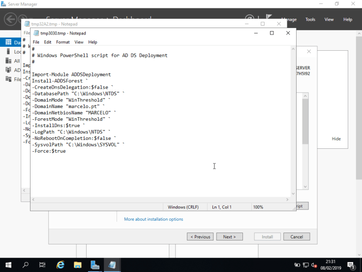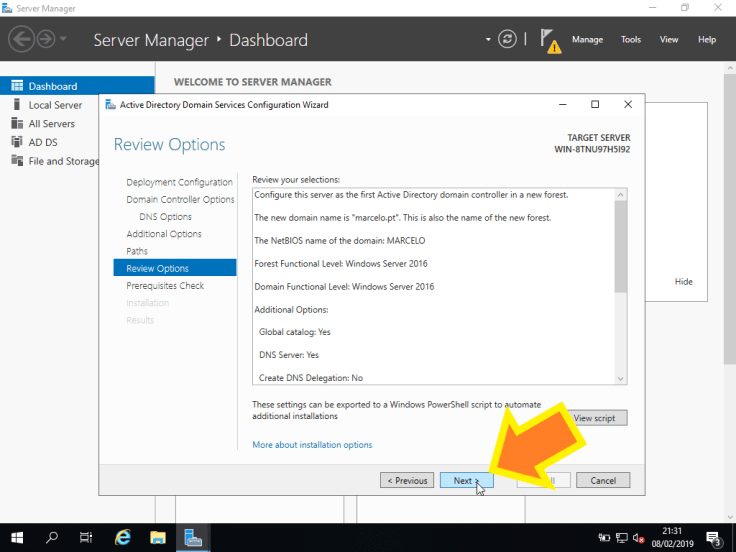 16. Por fim, temos um resumo com tudo o que vai ser feito. É ainda possível ver o script de PowerShell que será executado clicando em View script.