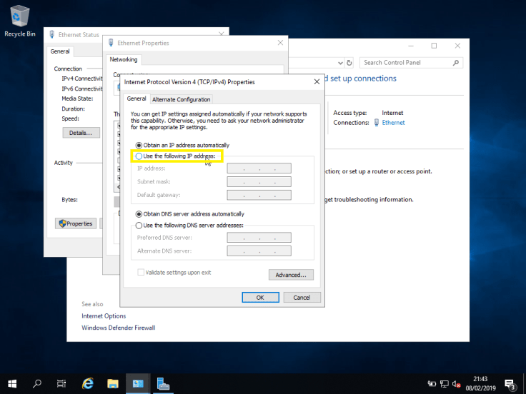 Vamos selecionar Use the following IP address: e definir todas as configurações.
