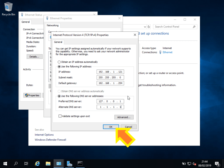 No caso do DNS, introduzam 127.0.0.1 como Preferred DNS server e um outro em Alternate DNS server, como o 1.1.1.1. Isto vai prevenir a ocorrência de possíveis “problemas” futuros e irá tornar o debugging mais rápido.
