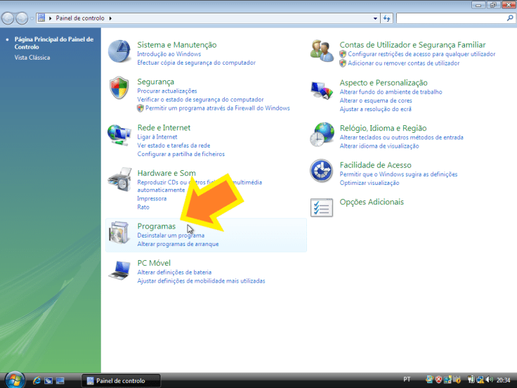 2. Já no Painel de Controlo, vamos clicar em Programas.