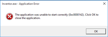 Tentam abrir o AutoCAD Inventor 2011 no Windows 10 e recebem uma janela com o erro 0xc0000142?