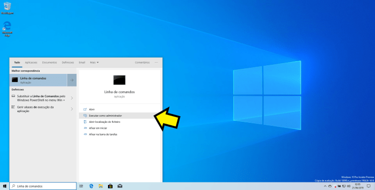 1. O primeiro passo é abrir a Linha de comandos como administrador.