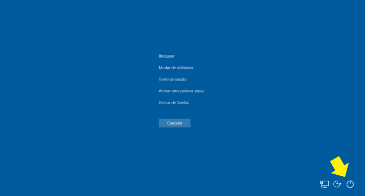 Pressionem a tecla Ctrl e, com o rato, cliquem no botão de energia que se encontra no canto inferior direito.
