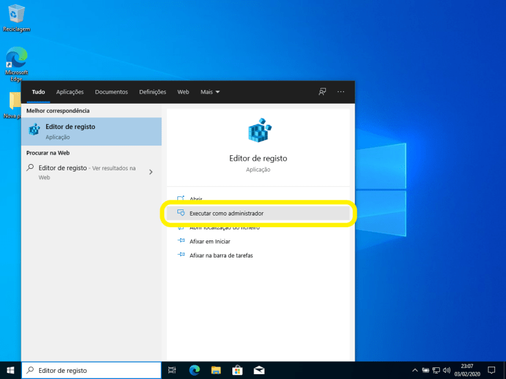 Vamos abrir o Editor de registo do Windows como administrador.