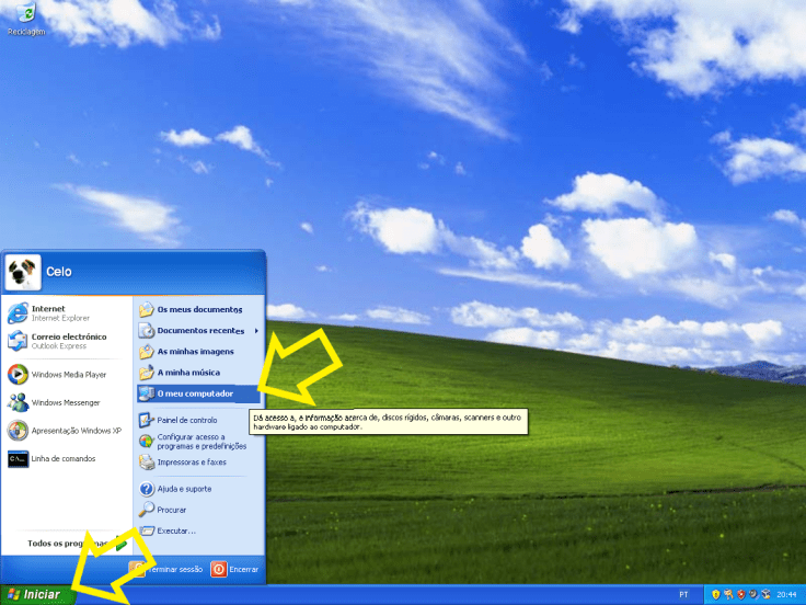 1. O primeiro passo é abrir o menu Iniciar e clicar em O meu computador.
