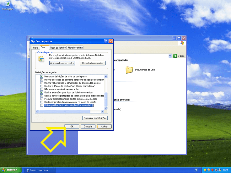 4. Por fim, vamos desmarcar a opção Utilizar partilha de ficheiros simples (Recomendado), localizada no final da lista.