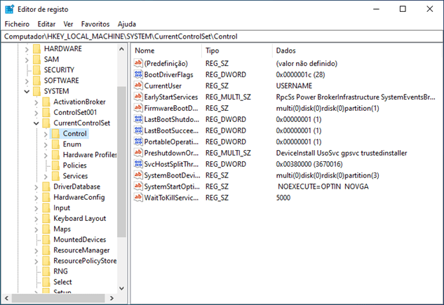 2. Na nova janela, vamos navegar até Computador\HKEY_LOCAL_MACHINE\SYSTEM\CurrentControlSet\Control.