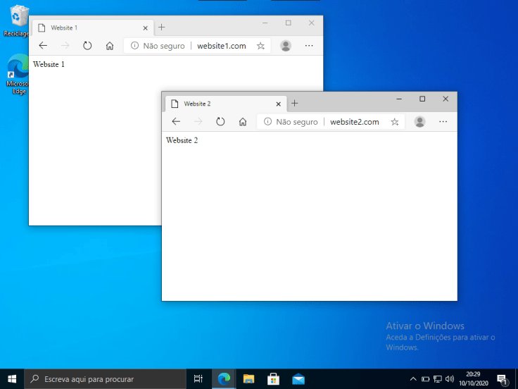 3. Vamos fazer os mesmos passos para o Website 2. Como host name terá website2.com.