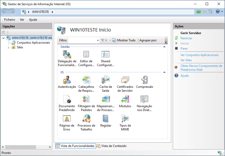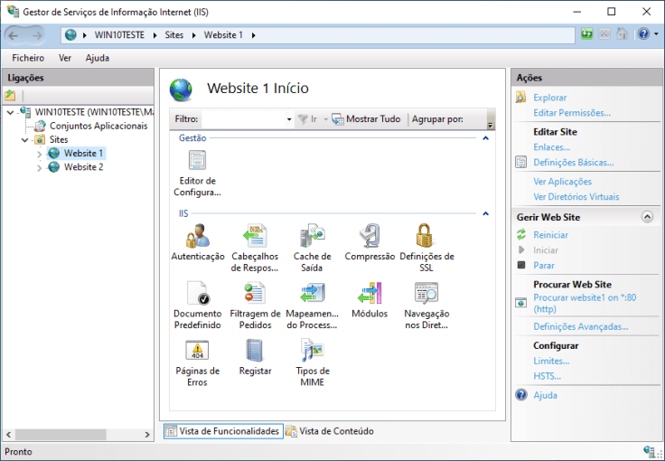 1. O primeiro passo é, depois de ter os dois sites no IIS, abrir o Gestor de Serviços de Informação Internet (IIS).