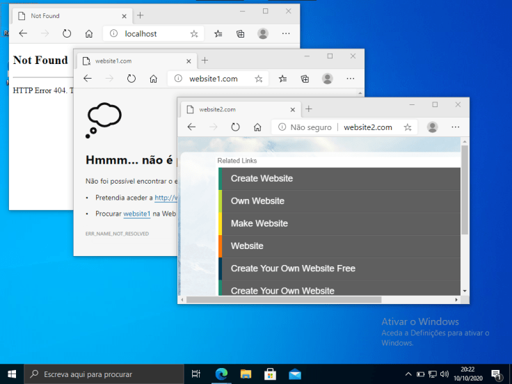 5. Agora, temos de tratar do DNS. Se tentarem aceder a qualquer dos websites neste momento nada funciona. Nem o http://localhost…