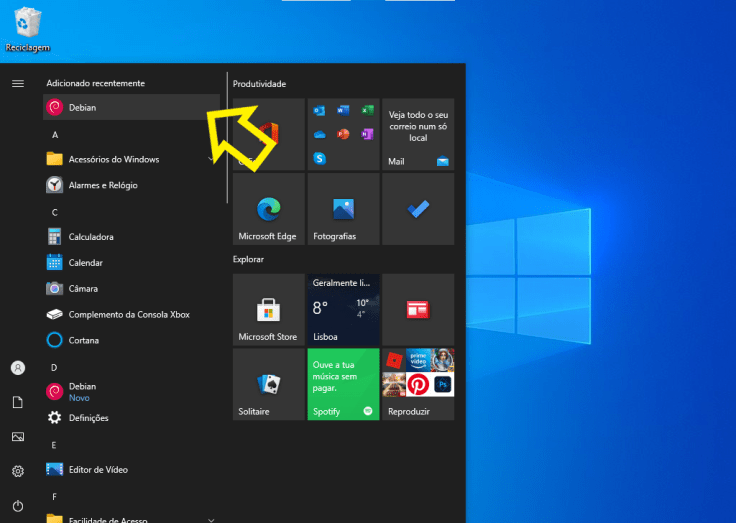 6. Depois basta abrir o menu Iniciar e abrir a “aplicação”.
