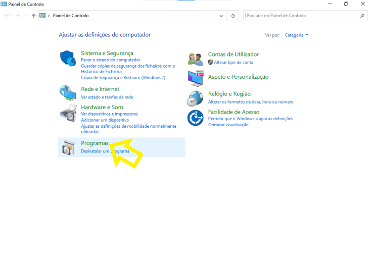 2. Depois, vamos clicar em Programas e, na página seguinte, em Ativar ou desativar funcionalidades do Windows.