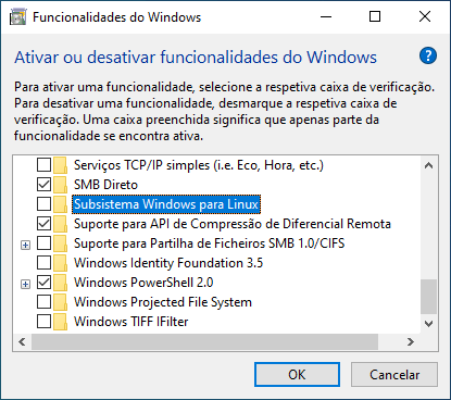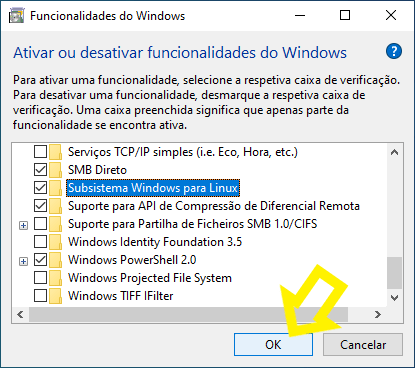 3. Agora basta selecionar a opção que queremos: Subsistema Windows para Linux e clicar em OK.