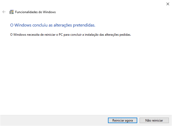 4. O Windows irá tratar de adicionar a funcionalidade…