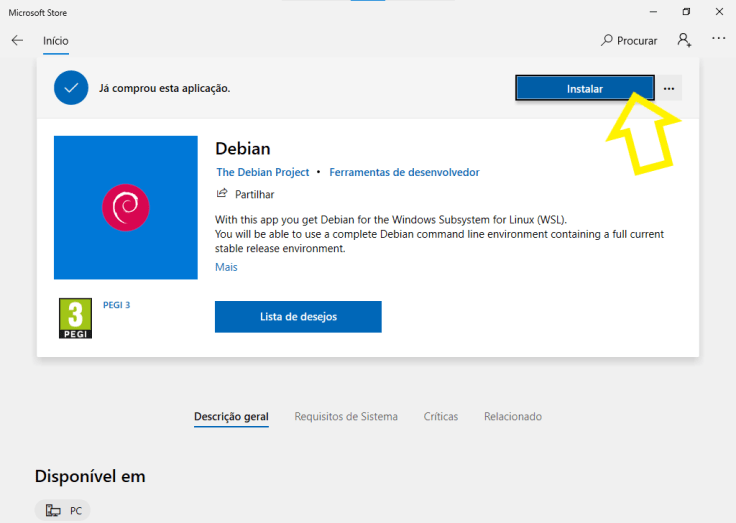 5. E chegámos à última fase: o subsistema está ativo, mas é preciso adicionar uma distribuição Linux. Onde a obtemos? Na Microsoft Store.